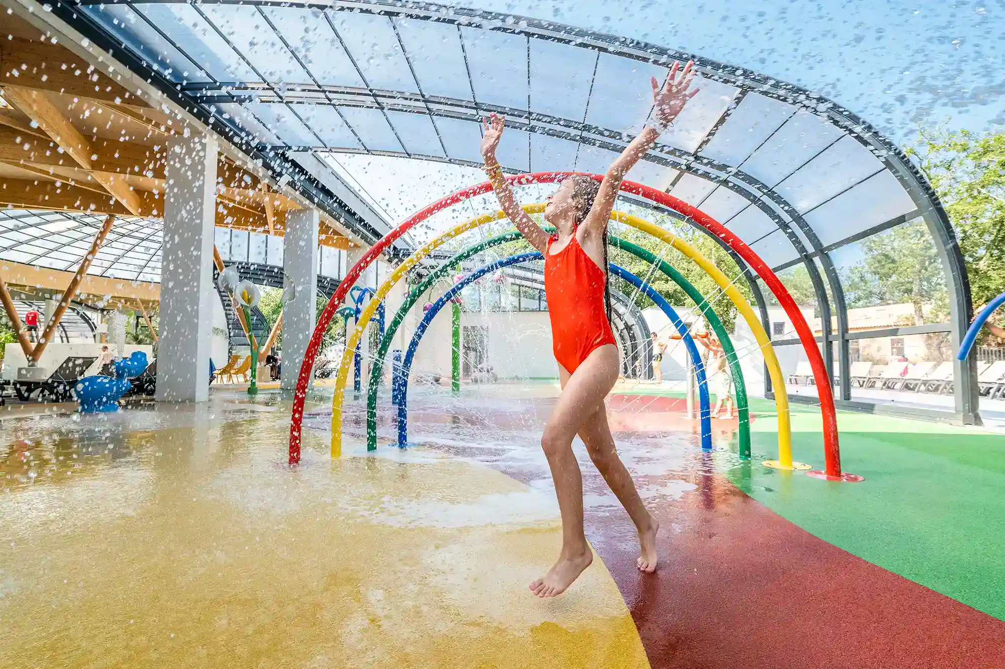- Jardin d’eau : dans notre camping avec parc aquatique en Ardèche, profitez de 500 m² pour vous rafraîchir, courir entre les jets d’eau et vous éclabousser sans retenue !
